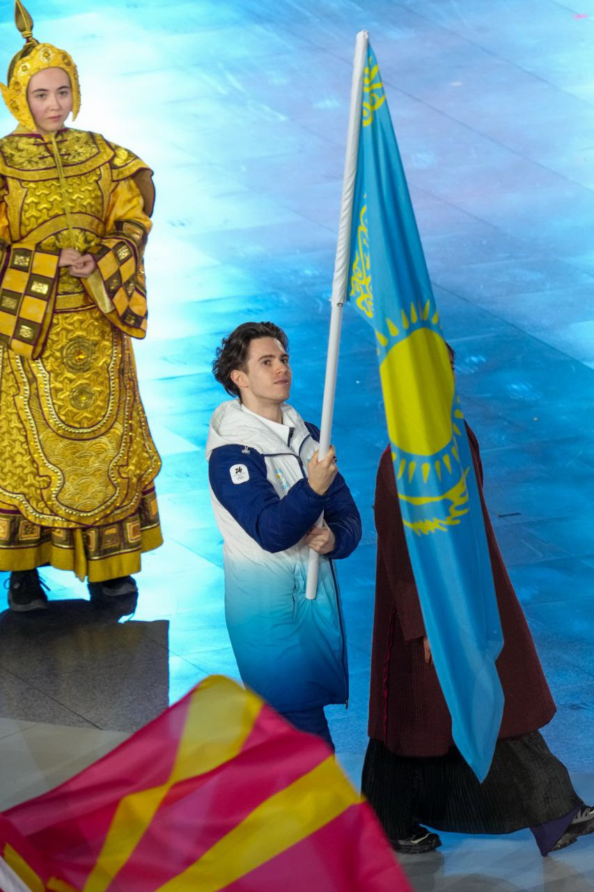 Отдельно от делегаций прошли знаменосцы всех сборных. Флаг Казахстанп пронес фигурист Михаил Шайдоров, завоевавший в Италии золотую медаль.