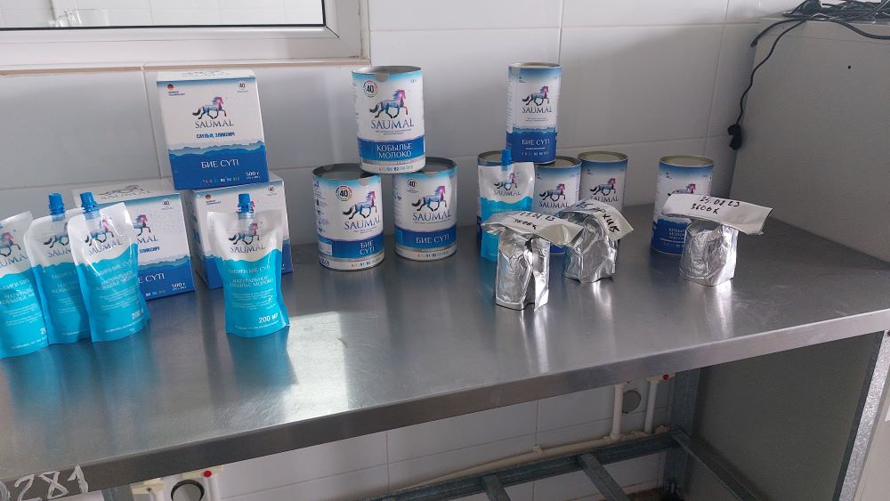 По информации заместителя генерального директора компании по сельскому хозяйству Виталия Гасюля, ежесуточный надой от 400 кобыл составляет примерно полторы тонны молока, которое здесь превращают в сублимированный порошок.