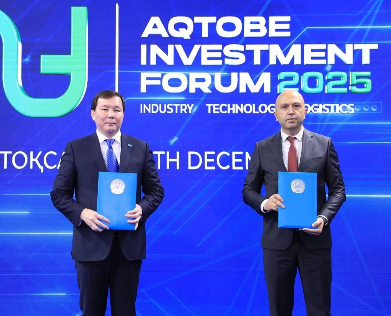 По итогам Aqtobe Investment Forum 2025 были подписаны соглашения на сумму 427 млрд тенге, предусматривающие строительство новых промышленных объектов, в том числе ветряной электростанции мощностью 100 МВт, металлургического предприятия «Союз Металлсервис», завода по сжижению природного газа.