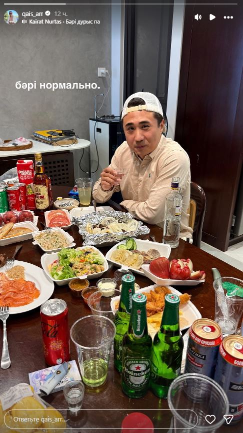 “Бәрі нормально”, – подписал снимок Қайсар, что в переводе означает “Все нормально”.