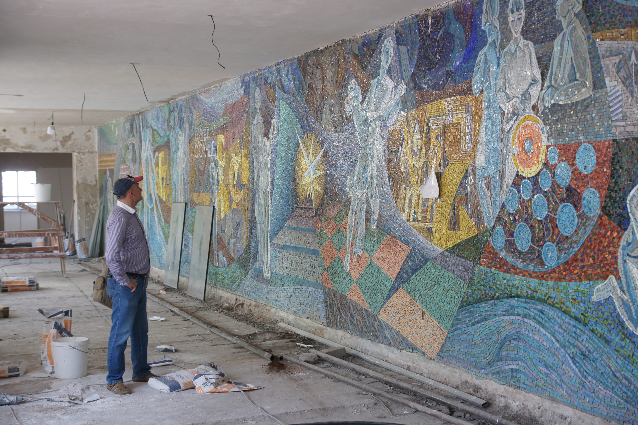 «Это история. И ещё раз напомню: помощи от государства как таковой нет. Инициатива по сохранению мозаичных панно исходит от простых людей», — заключает он.