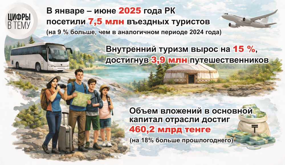 – Официальная статистика подтверждает: отрасль действительно демонстрирует устойчивый рост. В январе – июне 2025 года Казахстан посетили 7,5 миллиона въездных посетителей, что на 9 процентов больше, чем в аналогичном периоде 2024 года. Причем около 5 миллионов человек находились в стране более суток. Это важный показатель, свидетельствующий о качественном туристском потоке, а не о кратковременных транзитных