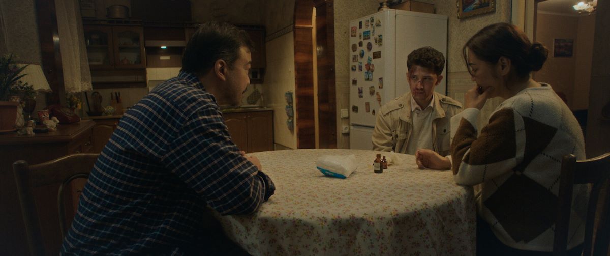 Режиссер Данияр Болотбеков использует длинные, статичные планы, позволяя деталям пространства – облупившейся краске на стенах, сетке на окнах, теням на полу – работать на создание визуального напряжения. В отличие от сериала, где камера чаще бегала за героями, показывая динамику дворовых сцен, здесь каждый кадр тщательно выстроен, чтобы зритель почувствовал психологическое давление и безысходность ситуации.