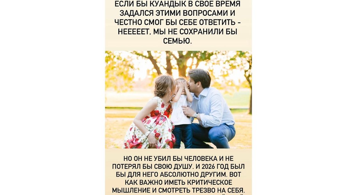 Если бы Куандык в свое время задался этими вопросами и честно смог быть себе ответить, нет, мы не сохранили бы семью.