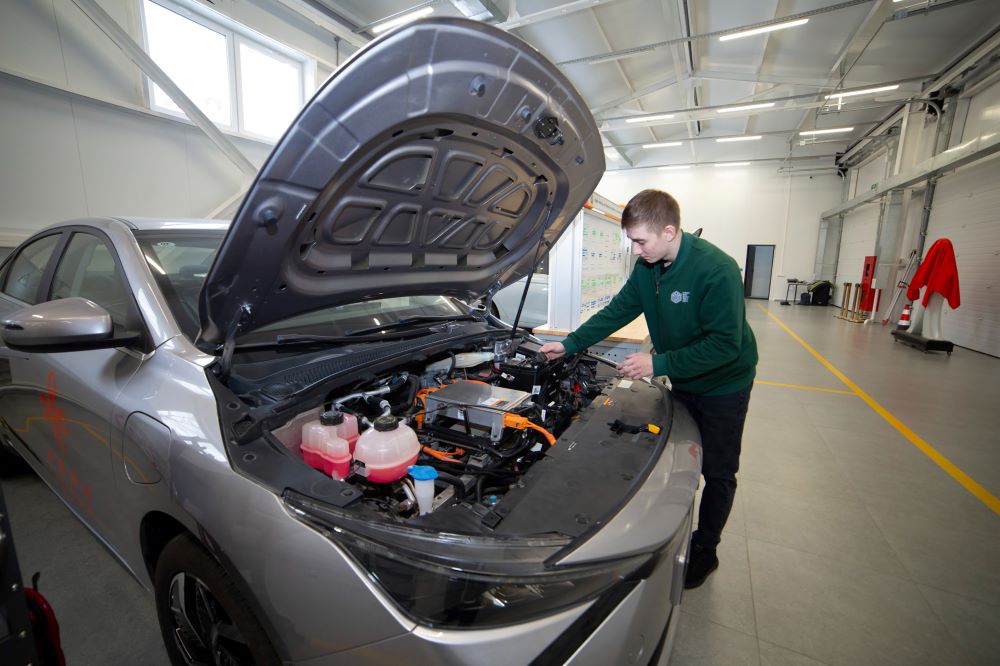 Каждый автомобиль – хоть бензиновый, хоть гибридный или с электродвигателем – представлен в виде готовой модели, а также в разобранном виде. Каждый агрегат – в рабочем состоянии и разложенный по деталям вплоть до отдельных винтиков и гаечек. Есть стенд, имитирующий аккумуляторную батарею и обучающий снимать значения по напряжению, силе тока, сопротивлению, устранять неисправности… Плюсом закладывается представление о правильной эргономике: детали выложены строго по порядку, все инструменты лежат на своих местах.