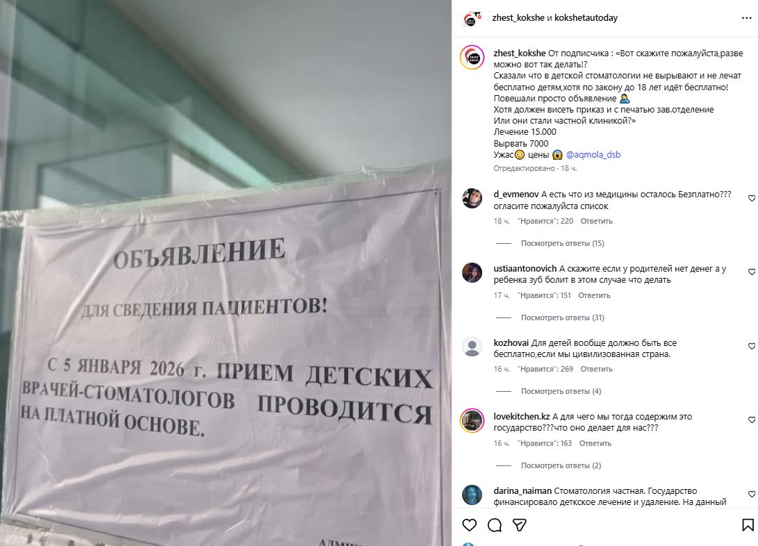 Жительница Кокшетау возмущена, что детям перестали оказывать бесплатную стоматологическую помощь, передает Liter.kz со ссылкой на zhest_kokshe.
