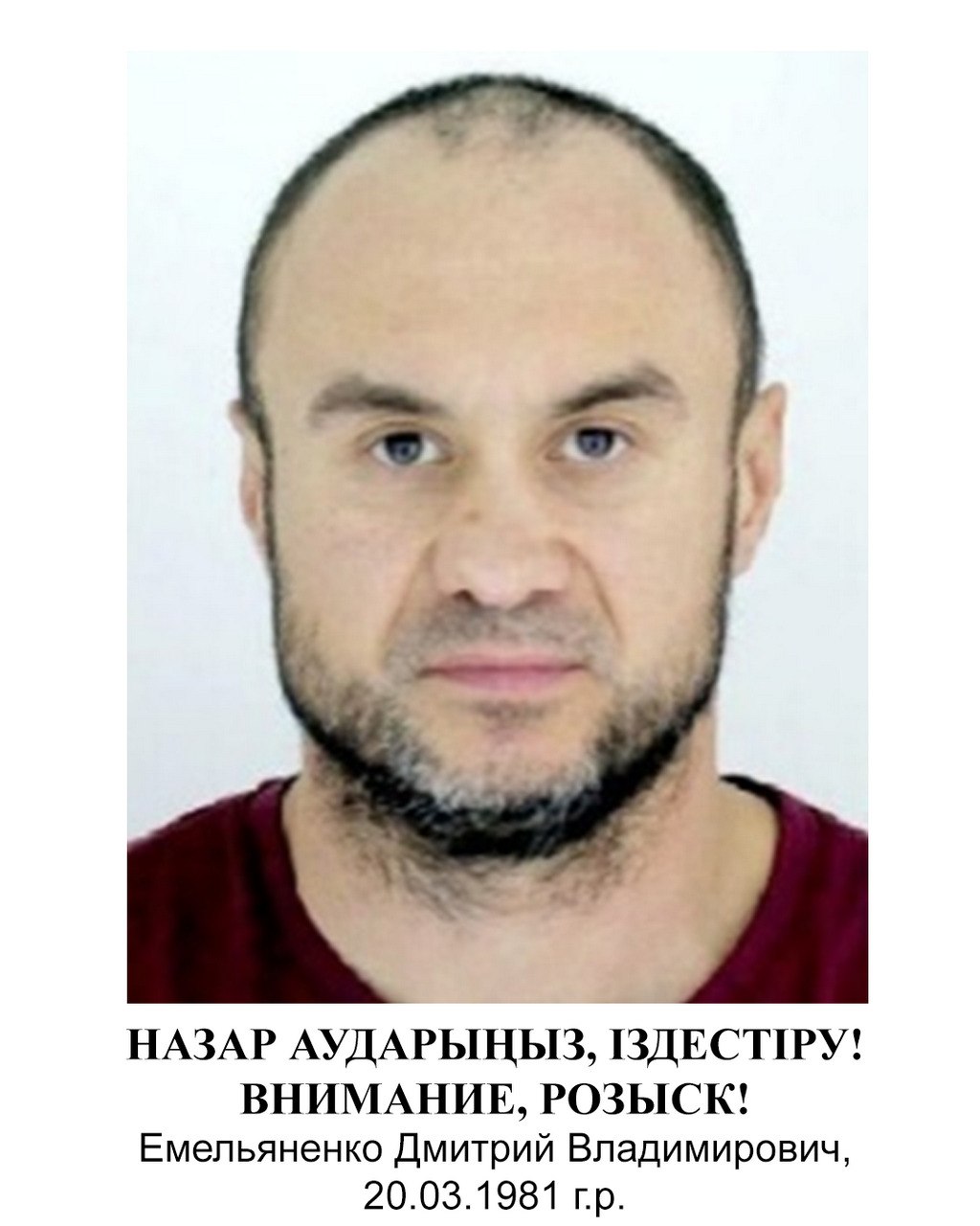 Управлением полиции города Петропавловска объявлен в розыск акмолинец Дмитрий Емельяненко, 1981 года рождения, передает Liter.kz.