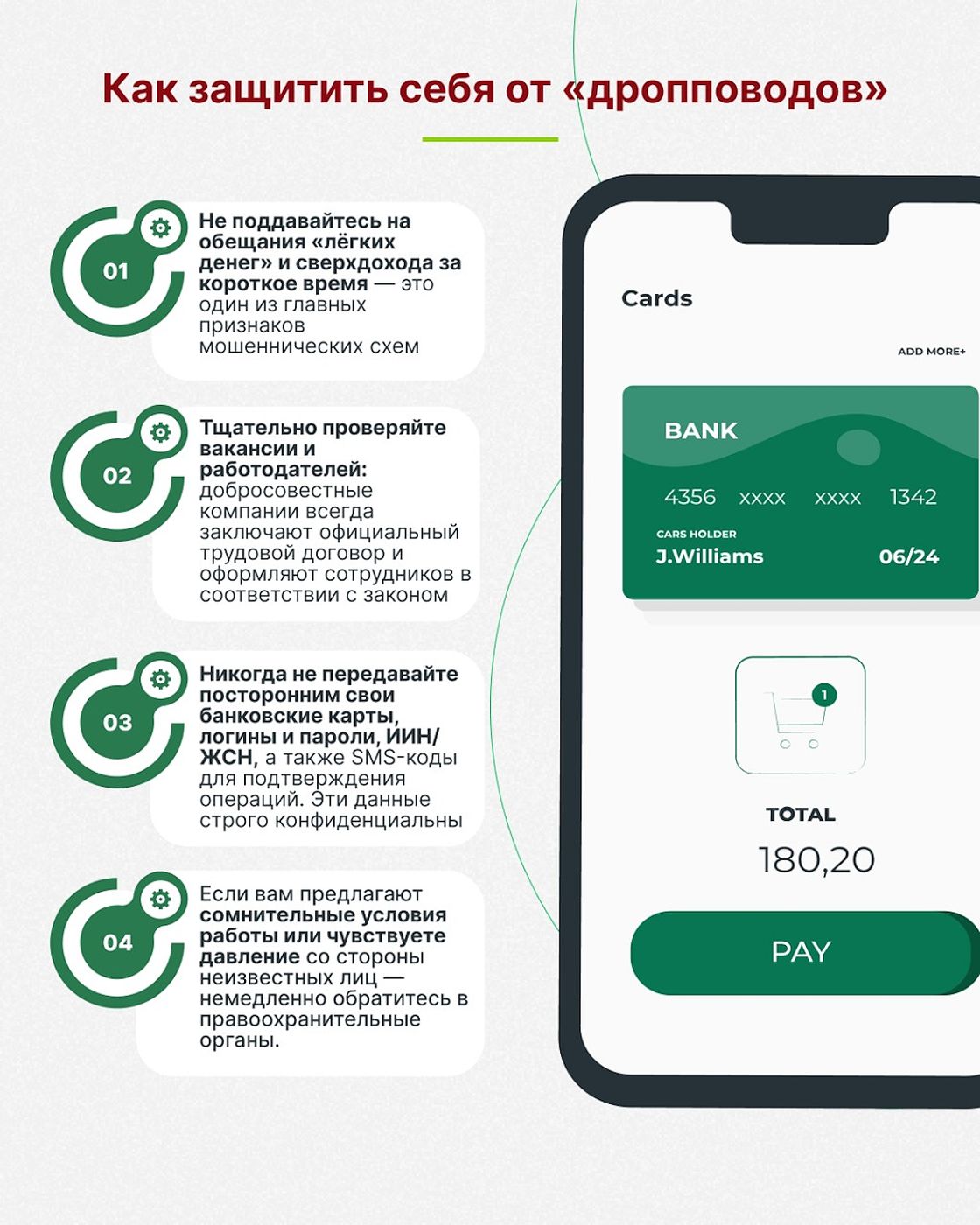 Как не стать дроппером в Казахстане. Инфографика: fingramota.kz