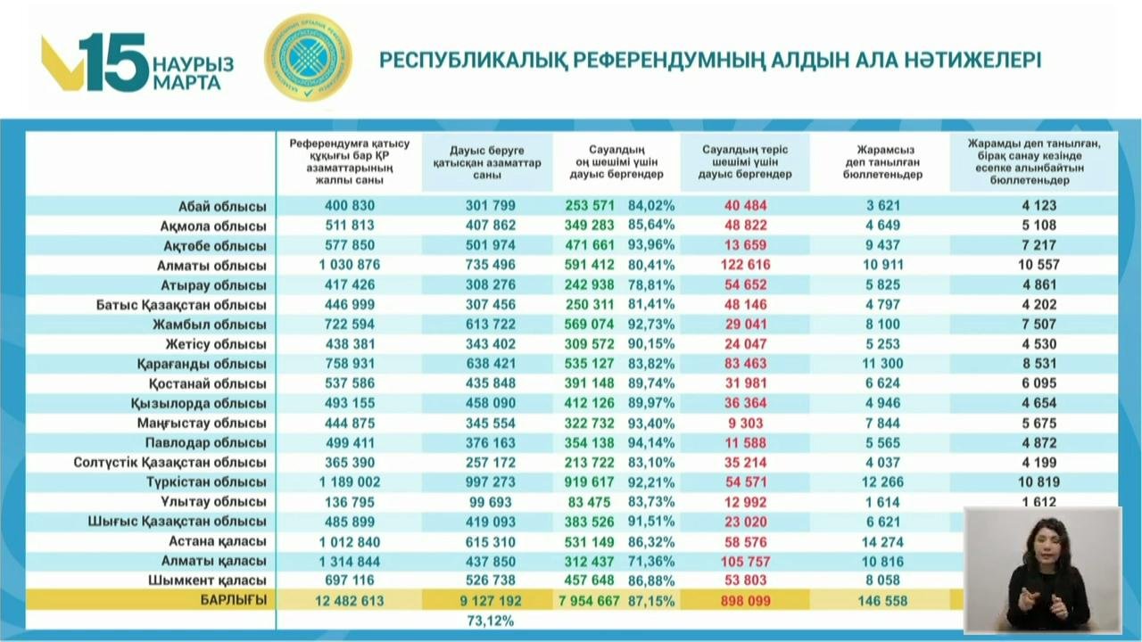 Другие новости на эту тему:Референдум по новой Конституции завершен: озвучены предварительные итоги явки казахстанцев