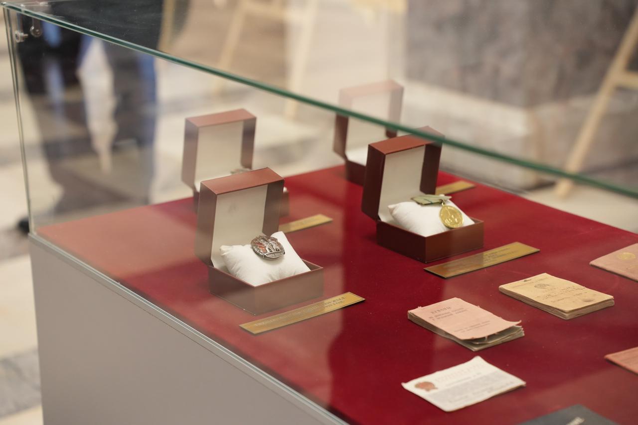 В фойе филармонии была открыта выставка, где посетители смогли увидеть ценные экспонаты из коллекции литературно-мемориального музея Жамбыла, принадлежавшие великому акыну.