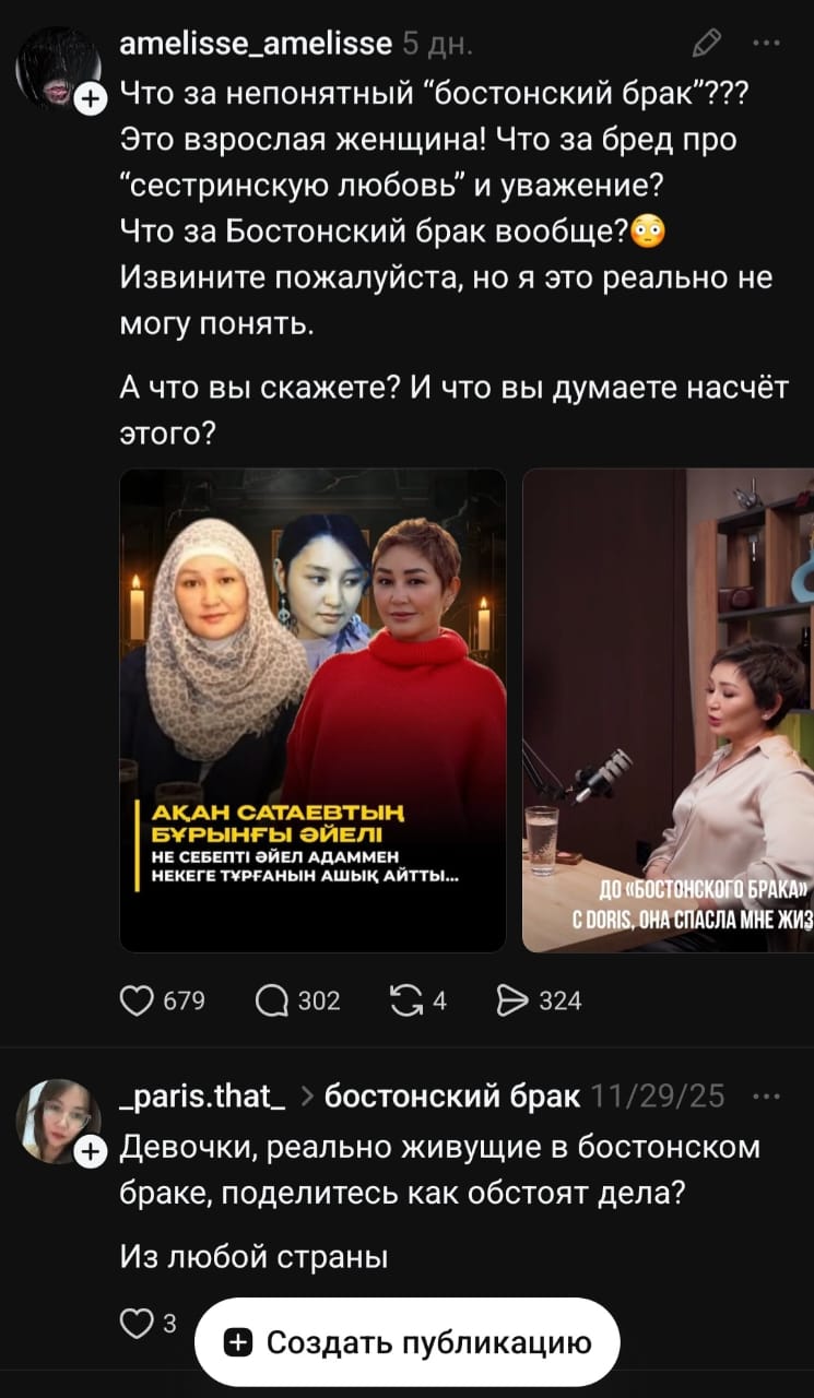 Threads желісінде де бұл тақырып қызу талқыланып жатыр. Қолданушылар өзінің осындай некедегі тәжірибесі туралы сөз қозғады.
