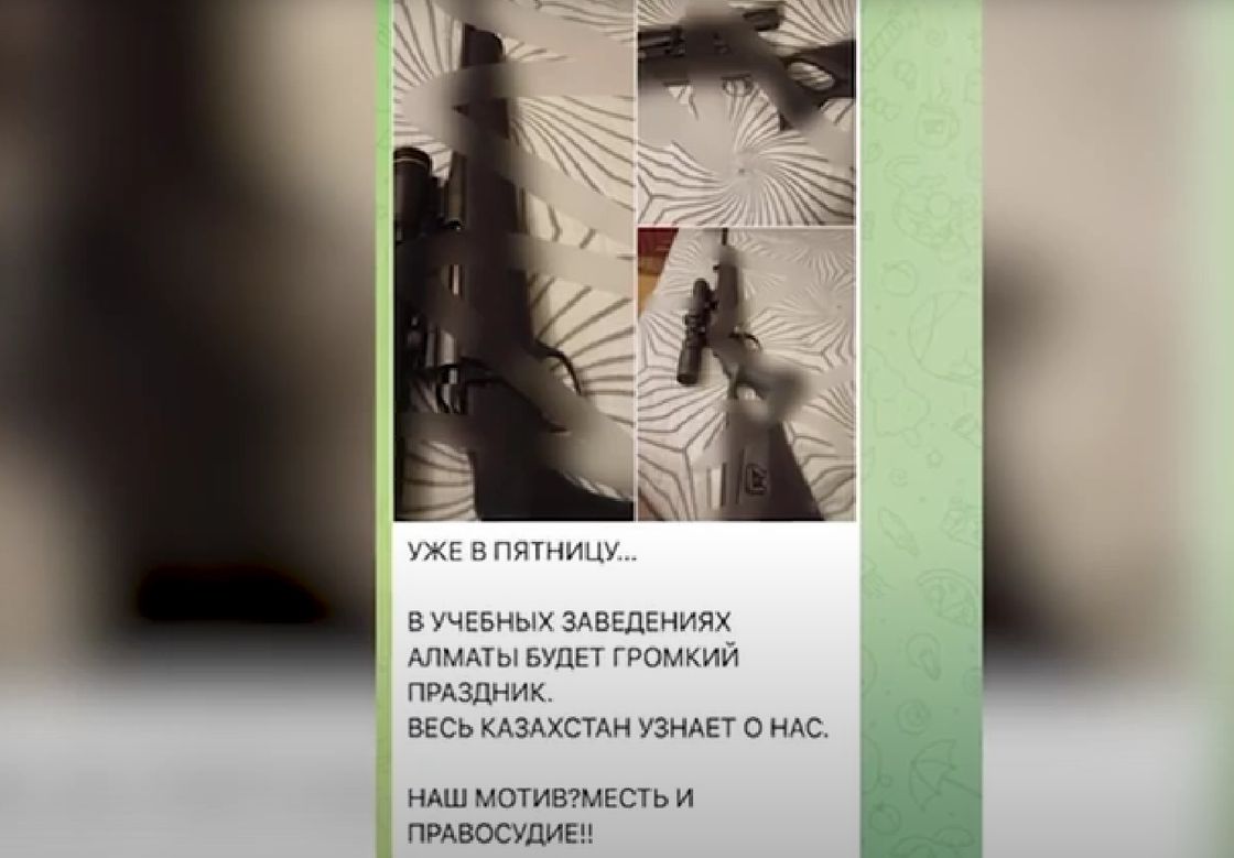10 декабря в департамент полиции Алматы поступило сообщение о публикации в социальных сетях угроз - аноним разместил надпись угрожающего характера, сопровождаемую изображением оружия и намеком на возможное насилие в отношении школ.