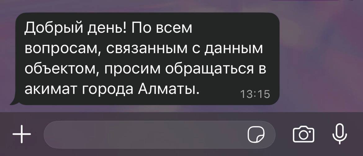 Спустя несколько дней ожидания ответа от PR-отдела нам сообщили, что нужно обратиться к акимату города Алматы.