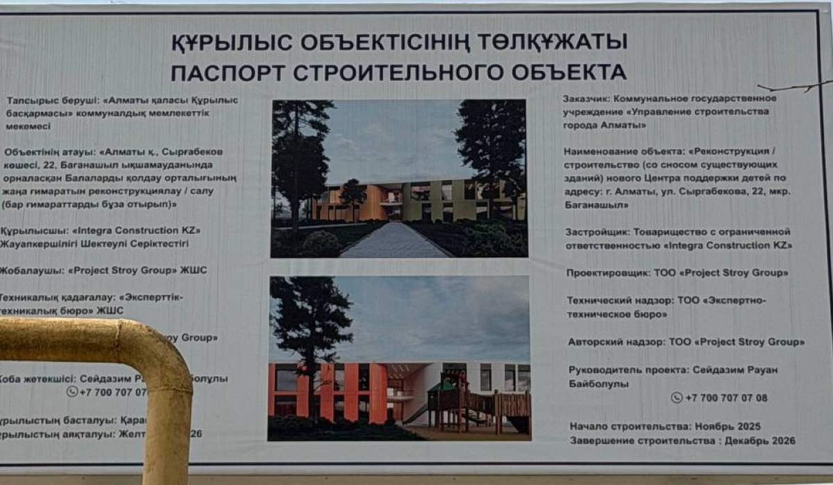 Паспорт объекта: какие работы заявлены официальноНа месте корреспондент Orda.kz также обнаружила паспорт объекта.