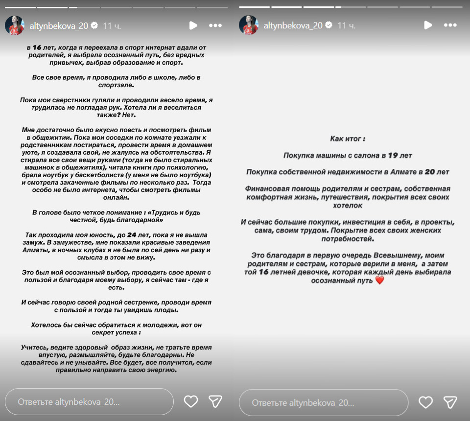Сабина Алтынбекова раскрыла секрет успеха в жизни