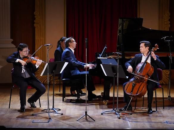 Открыло концерт выступление Государственного трио Forte Trio, исполнившего изысканное Фортепианное трио Вольфганга Амадея Моцарта.