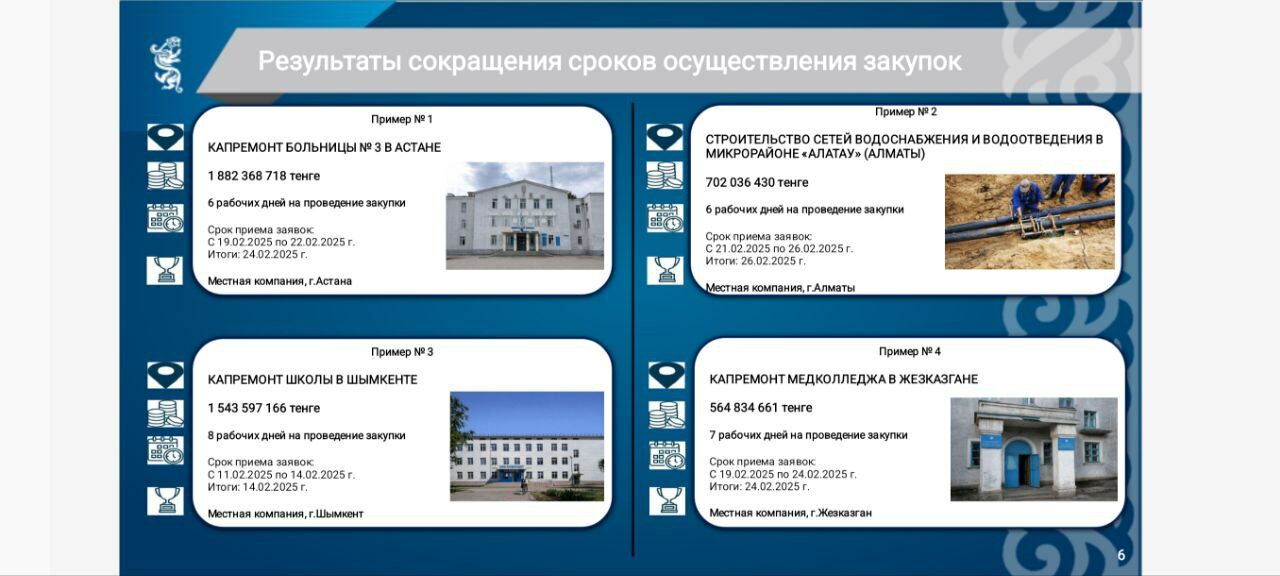 По данным Минфина, именно ускорение процедур позволило в первые месяцы 2025 года своевременно определить подрядчиков по ряду социально значимых объектов.