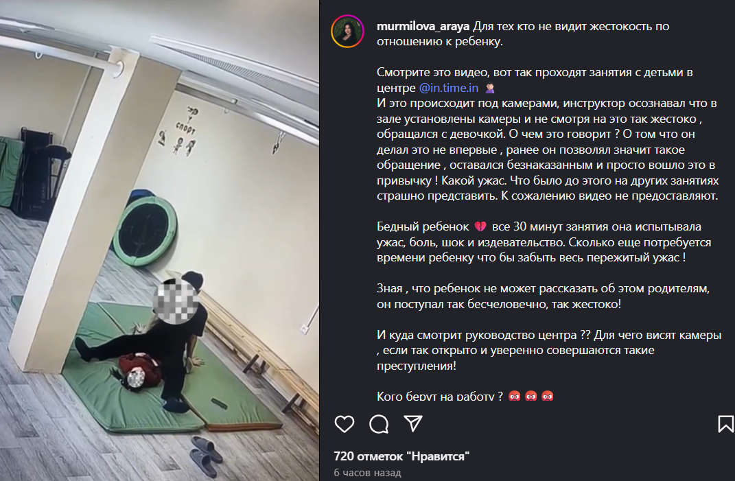 По словам автора публикации, инструктор проявил грубость и халатность, повлекшую физическую боль и страдания девочки. На опубликованных кадрах видно, как мужчина резко тянет ребенка за руку, после чего девочка хватается за нее и демонстрирует боль. Несмотря на это, инструктор продолжает занятие.