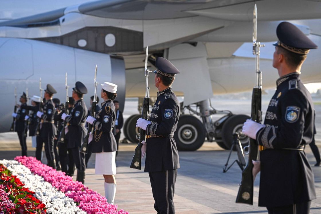 В аэропорту "Восточный" в честь высокого гостя была выстроена рота почетного караула.