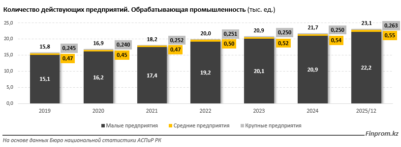 "Крупный бизнес сохраняет незначительную долю рынка – около 250-260 предприятий. Сегмент средних компаний практически не меняется, их количество колеблется на уровне 500 ежегодно, что может указывать на сложности с переходом малых предприятий в категорию средних", – пояснили аналитики.