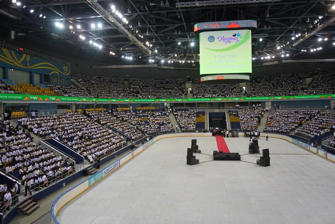 Вместить детский флешмоб такого масштаба смогла площадка «Almaty Arena». Здесь — эпично, но без зрителей: по соображениям безопасности — реализовали задумку городских властей — проект «Домбыра үні». Да и зрителям негде было бы разместиться: все трибуны заняли участники флешмоба. А в центре площадки солировал Асылбек ЕНСЕПОВ.