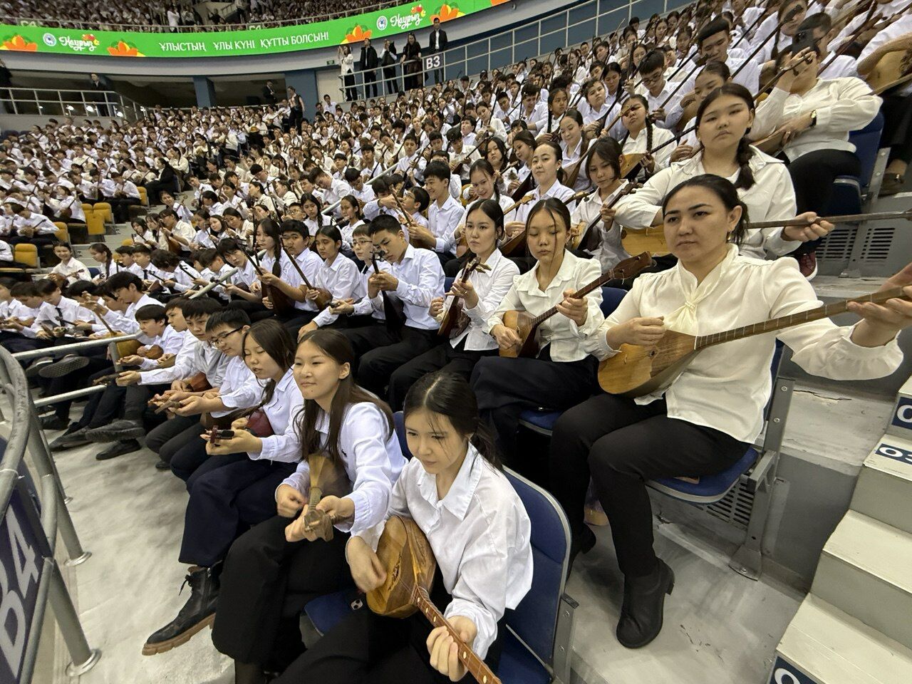 В Алматы юные домбристы установили рекорд в честь Наурыз мейрамы — одновременно одиннадцать с половиной тысяч музыкантов сыграли попурри из народных и авторских кюев в современной аранжировке.