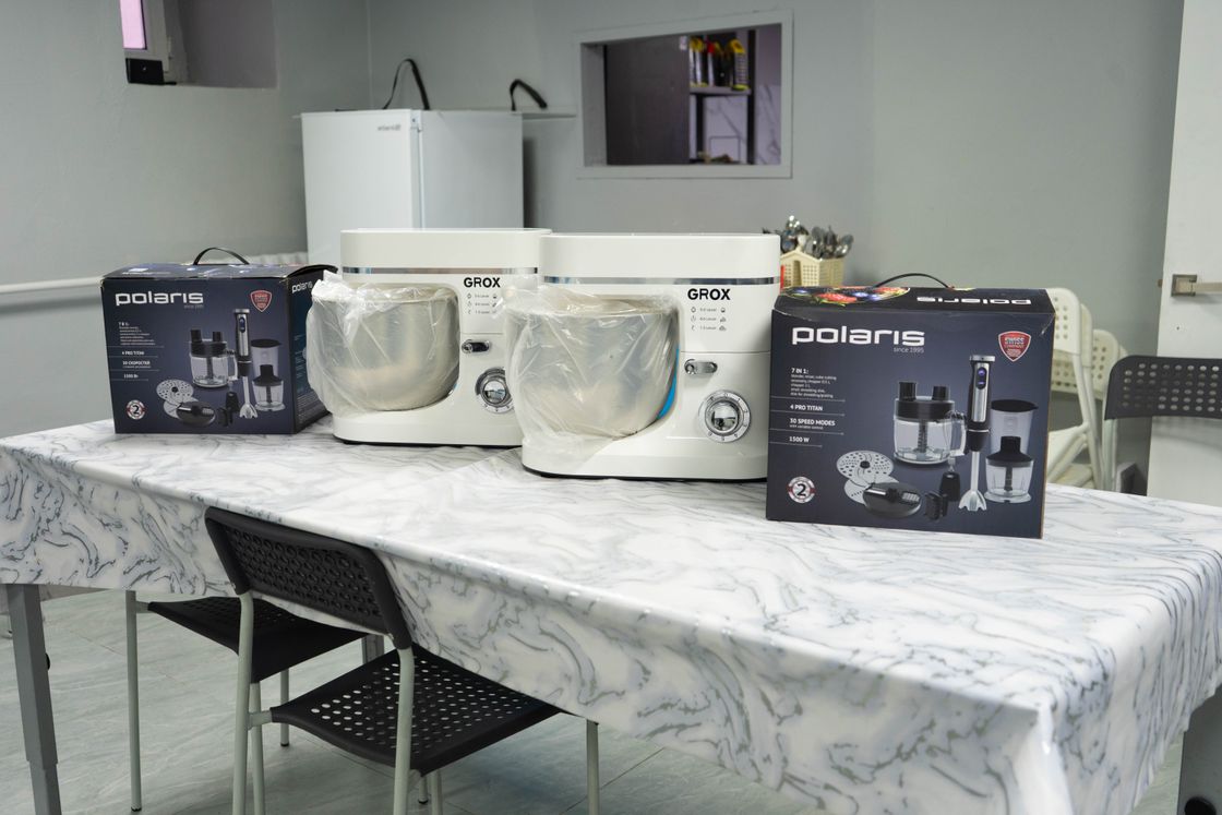 Для центра были приобретены электроплита, морозильник, тестомесы, блендеры, а также игрушки для детей, детское питание и другие необходимые товары.