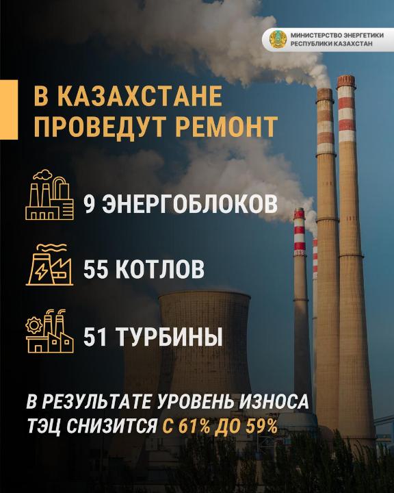 В 2026 году планируется проведение ремонтов 9 энергоблоков, 55 котлов и 51 турбины. Благодаря этим мерам уровень износа казахстанских ТЭЦ снизится с нынешних 61% до 59%. Системный подход к ремонтам позволяет не только улучшить работу станций, но и планомерно выводить их из «красной зоны» риска.