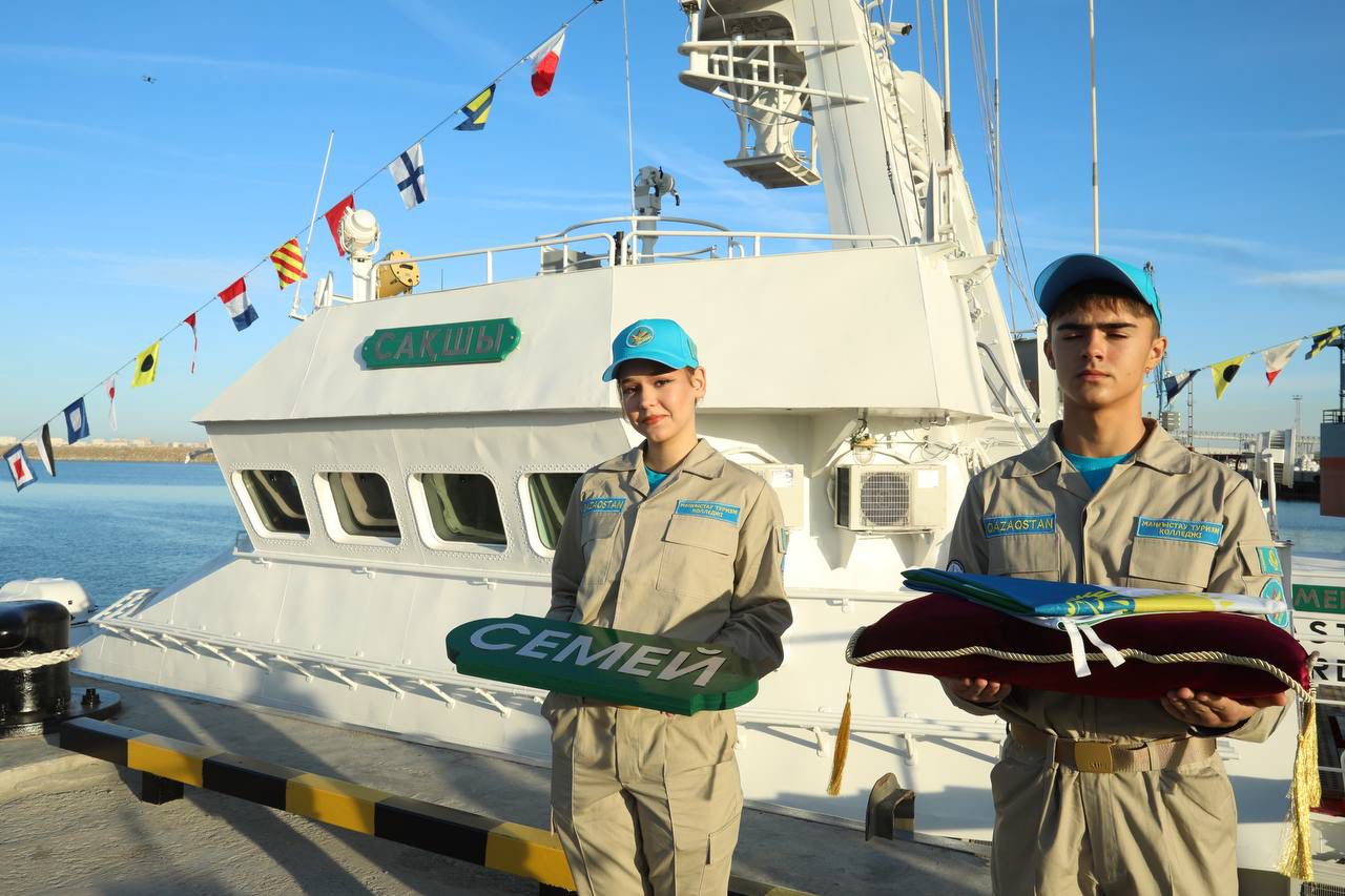 В ходе мероприятия государственный флаг был торжественно вручен экипажу корабля «Семей», после чего, в соответствии с морскими традициями, состоялся ритуал его поднятия.