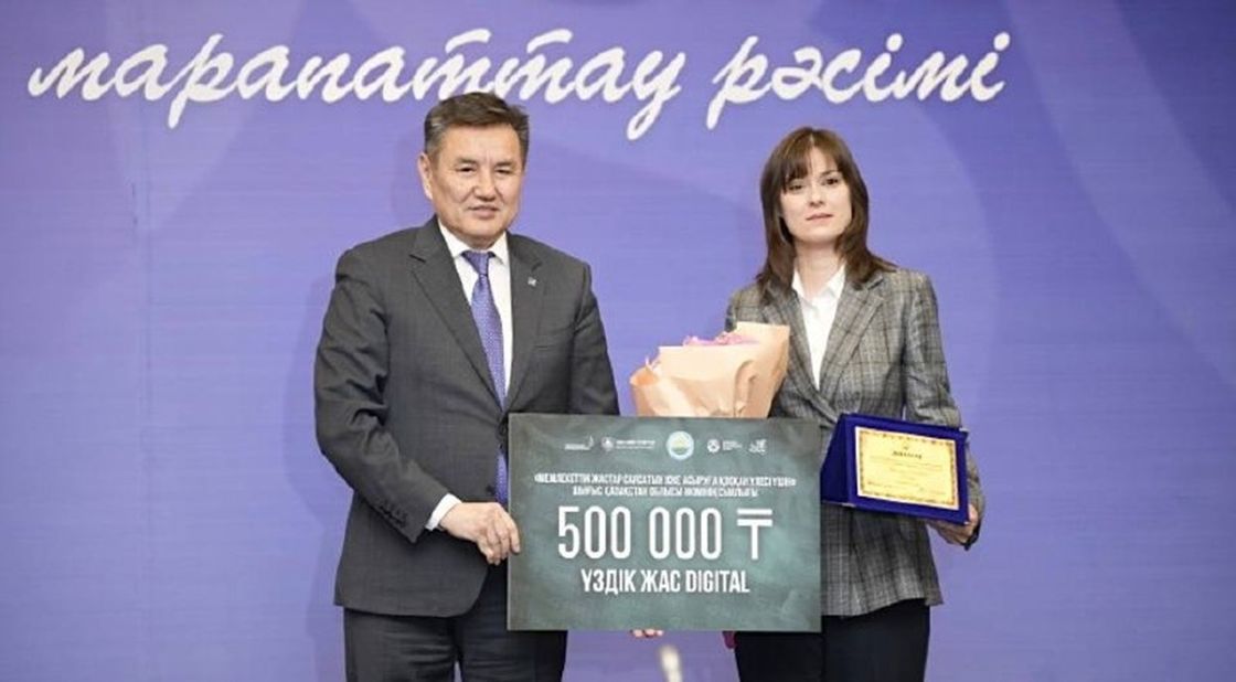 А победителям номинации "За вклад в реализацию государственной молодежной политики" вручены денежные сертификаты по 500 000 тенге от акима области.