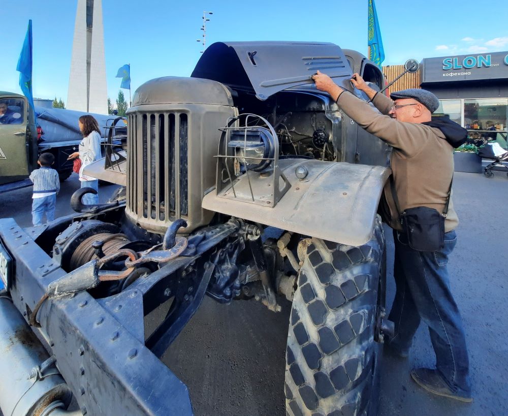 Не меньший интерес у посетителей выставки вызвала и автолавка промтоваров на шасси грузовика ГАЗ-51. Эмблема на двери водителя сообщает о том, что машина была приписана к дорожному управлению рабочего снабжения Целинной железной дороги и обслуживала станцию Целиноград. Владимир Ильченко, владелец передвижной лавки, считает, что главное достоинство советского автопрома – в его простоте и надежности.