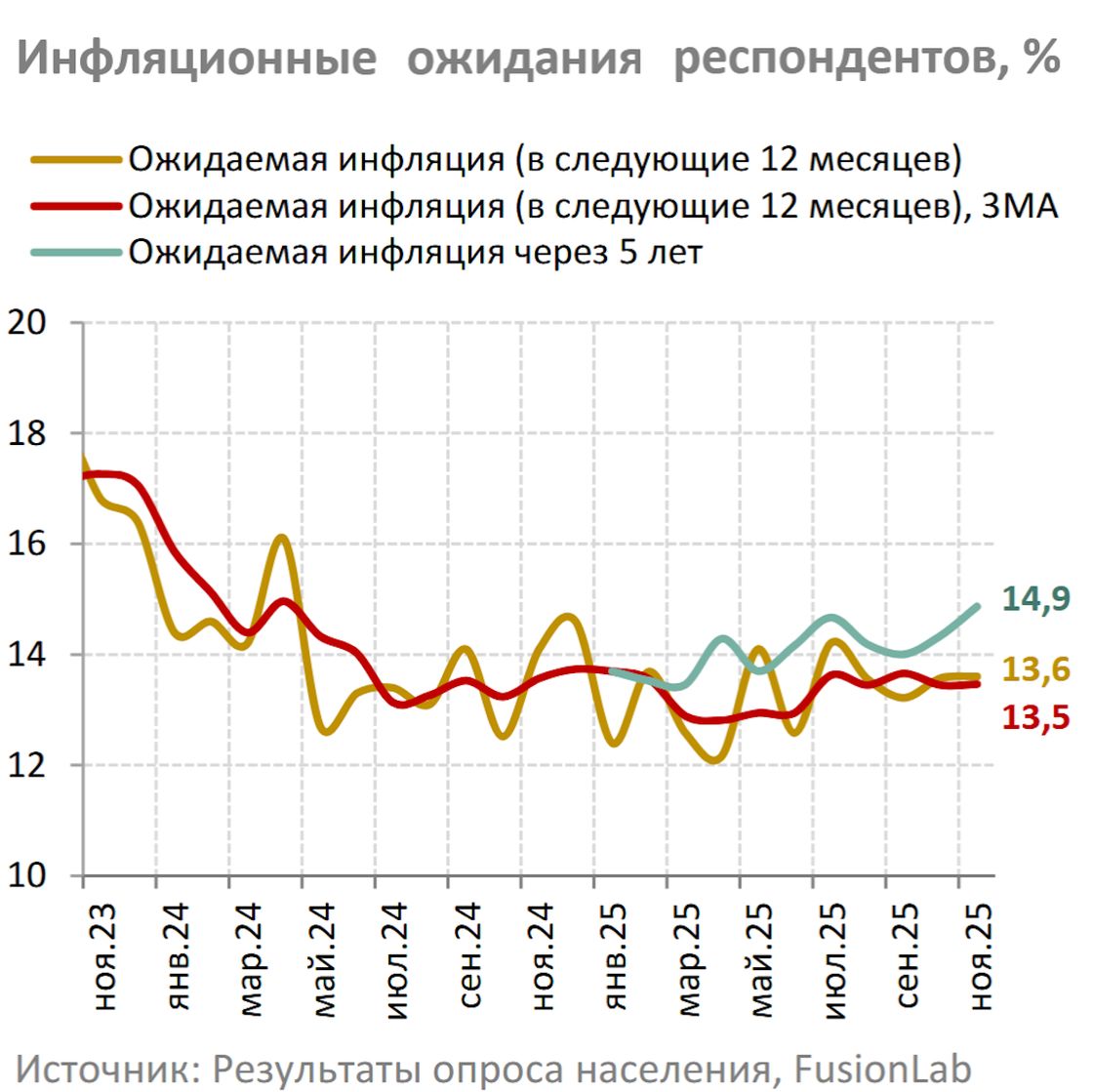 Рост цен влияет и на настроения граждан. Они не верят в снижение инфляции и считают, что в следующие 12 месяцев она останется высокой – 13,6%. А через пять лет вообще вырастет до 14,9%.