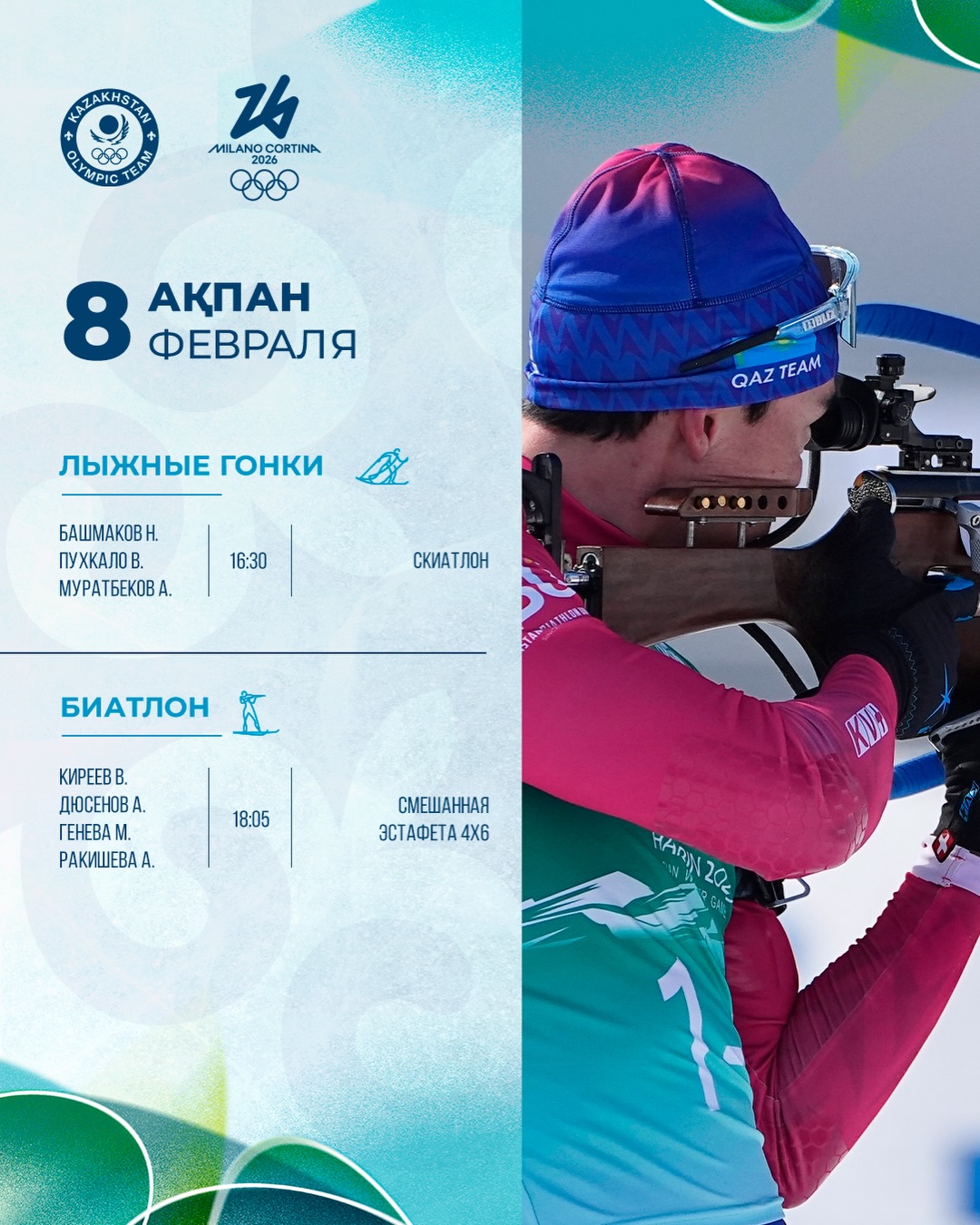 В воскресенье. 8 февраля, в зимних Олимпийских игр 2026 года в Италии казахстанские спортсмены сразятся за медали в двух видах спорта, передает Liter.kz со ссылкой на НОК РК.