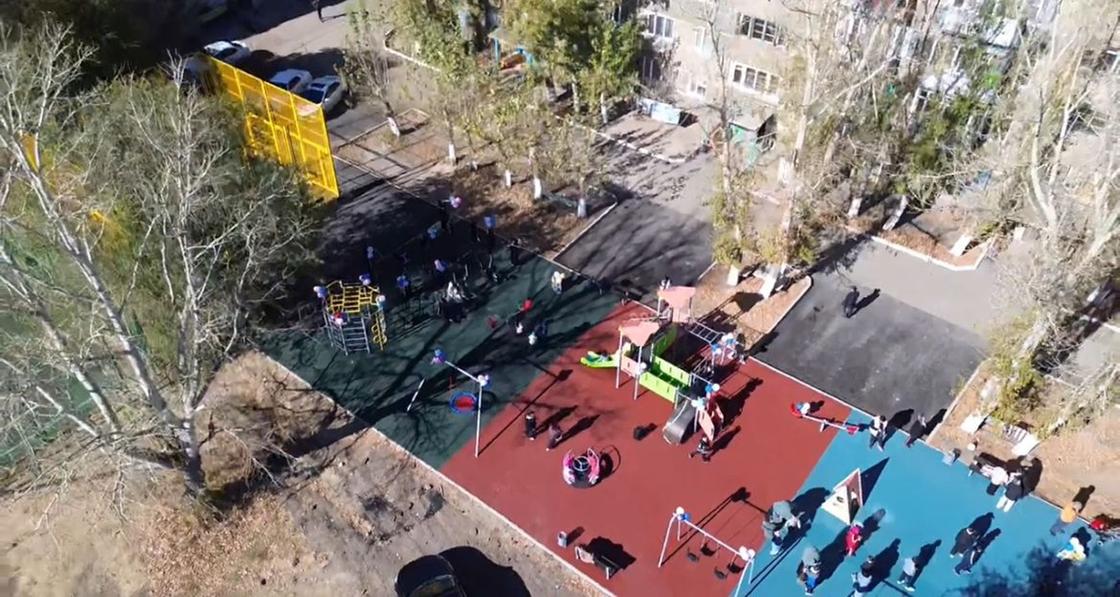 Обновленный двор – подарок жителям Ерейментау. Во дворе дома №97 по улице Богенбай батыра в городе Ерейментау торжественно открыли новую зону отдыха и детскую площадку, построенную в рамках благоустройства.
