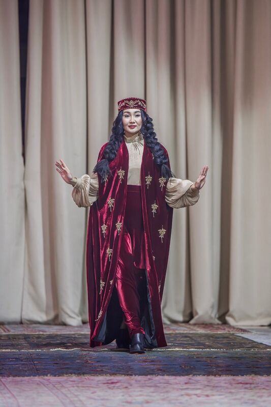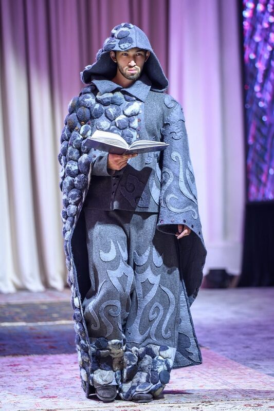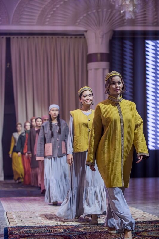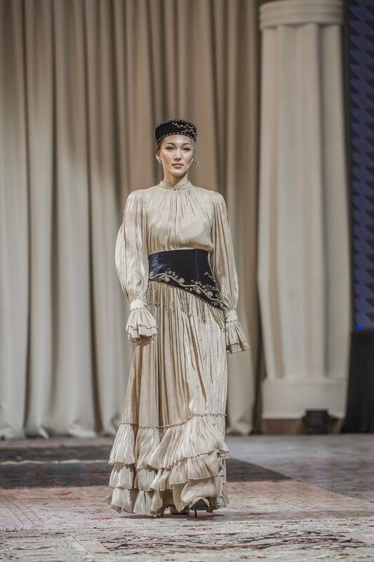 Как понятно из самого названия, все участники используют этнические элементы и показывают, как это можно сделать стильно и носибельно. Такой показ не про музейную аутентичность, не про дословное цитирование, а про шик с тюркским оттенком. И выглядело это потрясающе. Практически любой образ можно хоть сейчас надеть, и он не будет выглядеть архаично, а, наоборот, свежо и стильно.