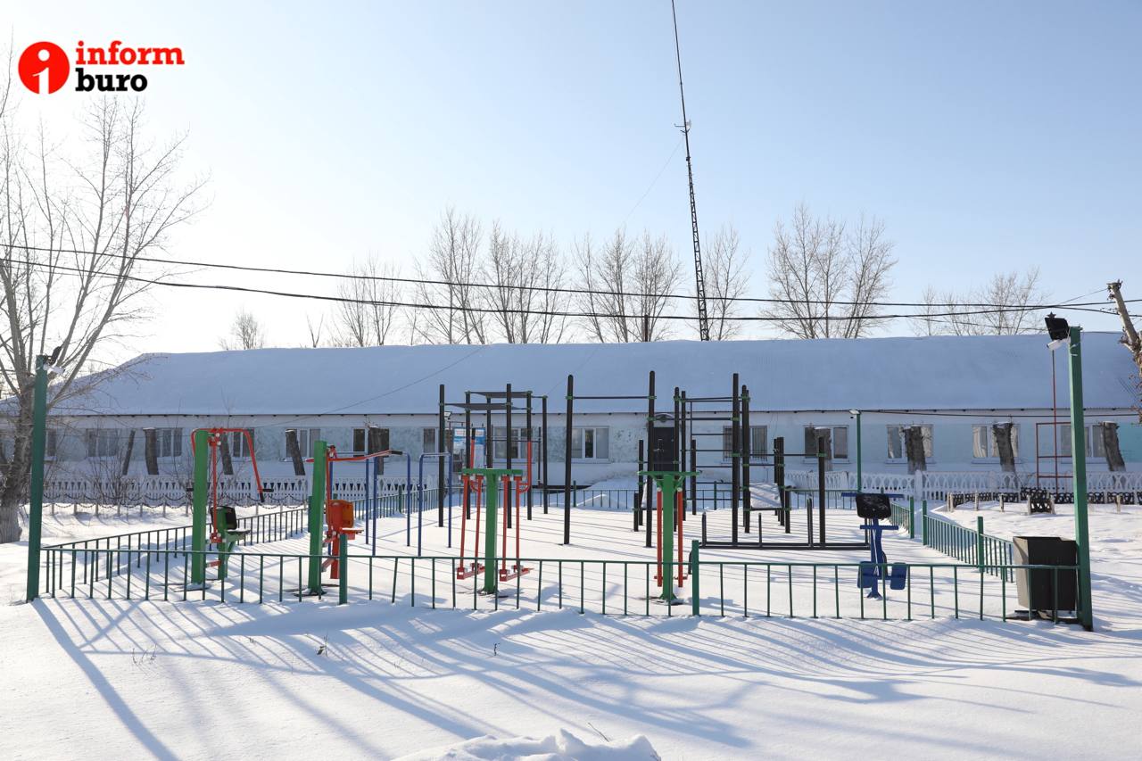 Ворк-аут площадка на фоне будущего здания акимата в селе Майлан / Фото Informburo.kz