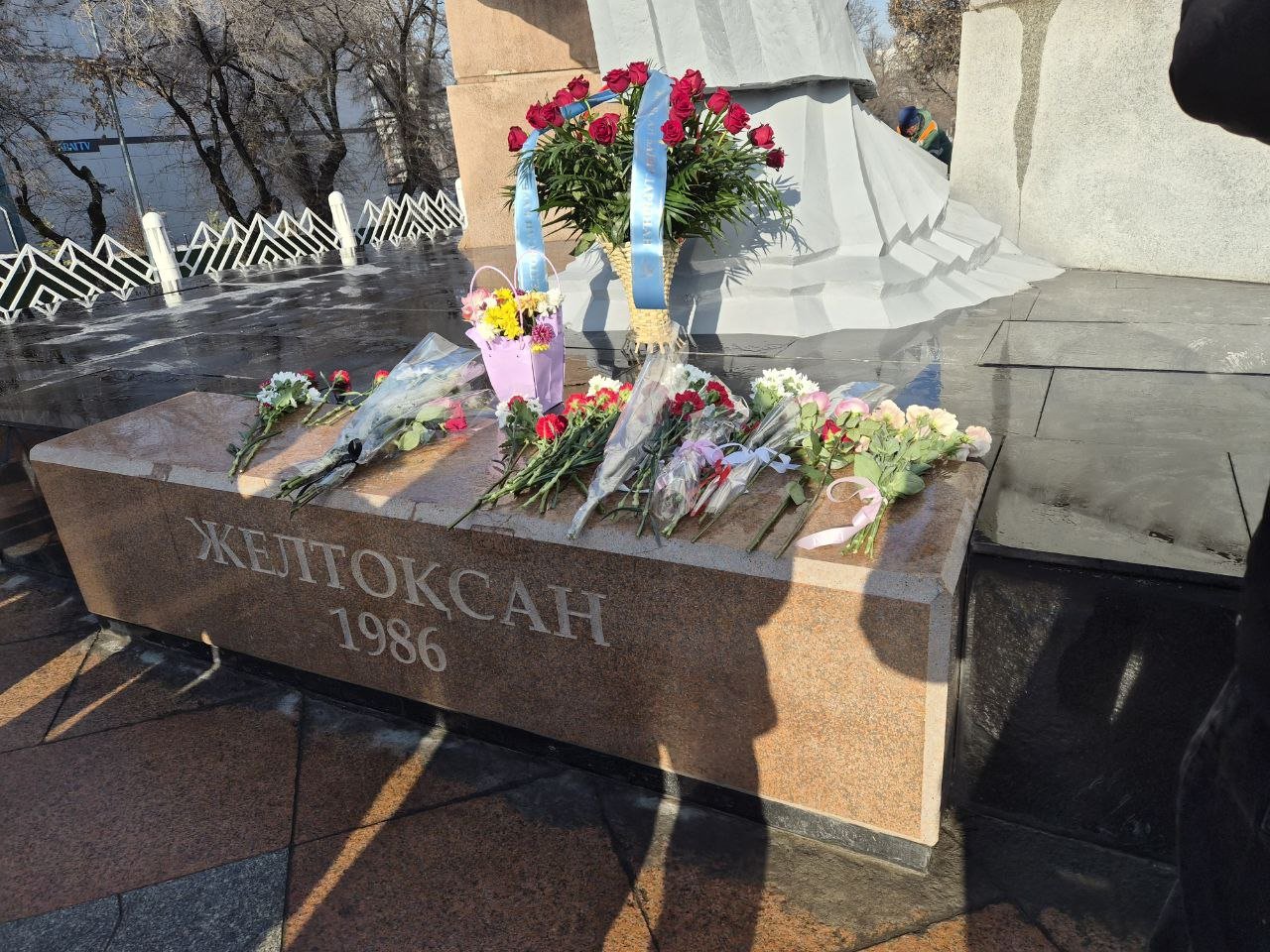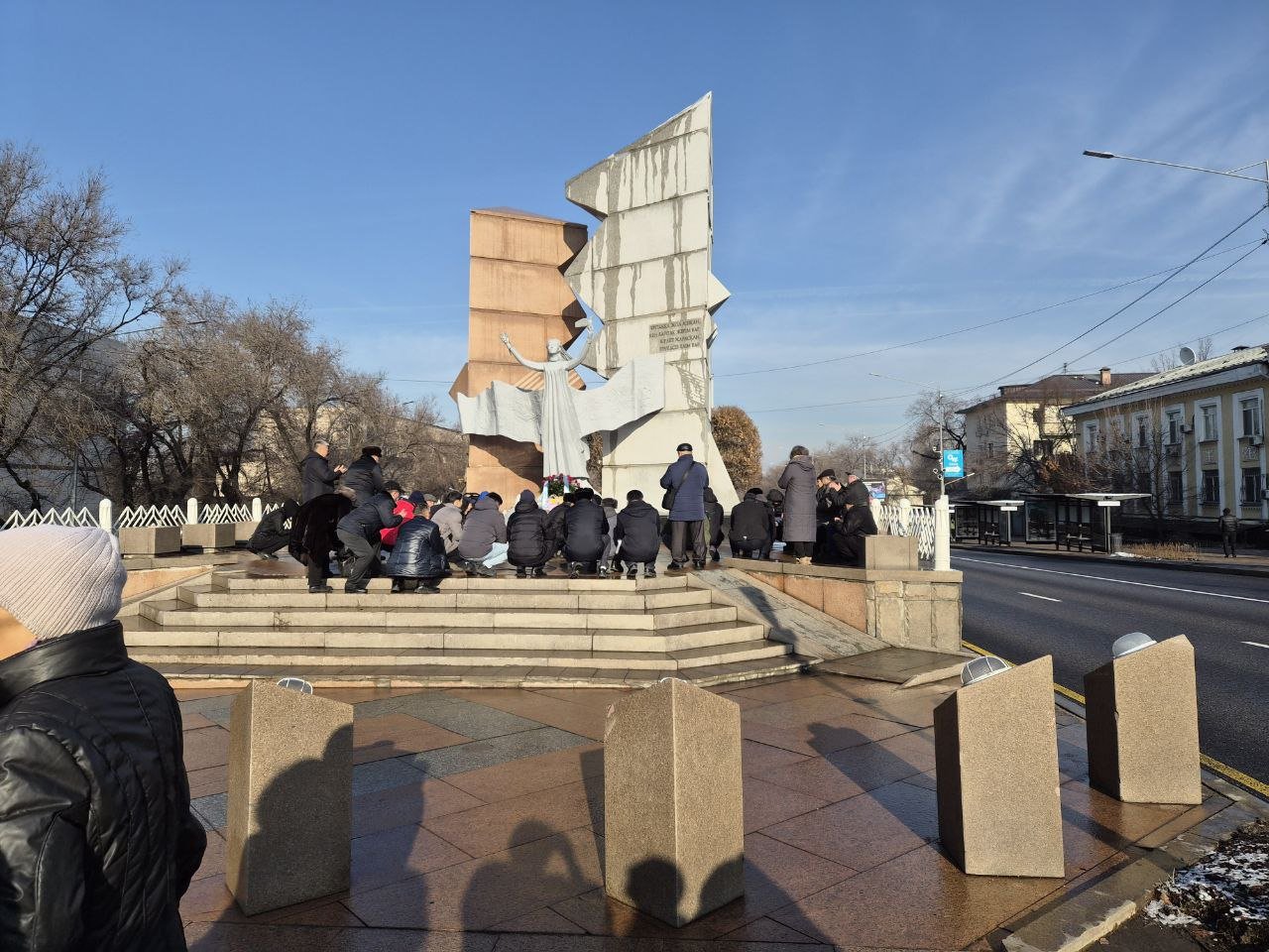 Люди почтили память погибших. Возложили цветы, прочитали молитву и хором исполнили песню «Желтоқсан желі».