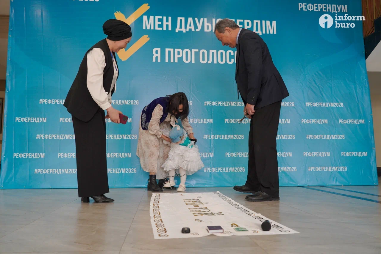 Первые шаги с КонституциейПо всей республике проходит голосование. Референдум, посвящённый новой Конституции, на участке №1062 села Отеген Батыр Алматинской области, начался с трогательного старинного казахского обряда Тұсаукесер (разрезание пут). Мать пятерых детей Гульмай Ракишева вместе с супругом Еркебуланом приняли решение провести годовалой дочери Адине обряд на фоне информационного стенда со слоганом "Я проголосовал".