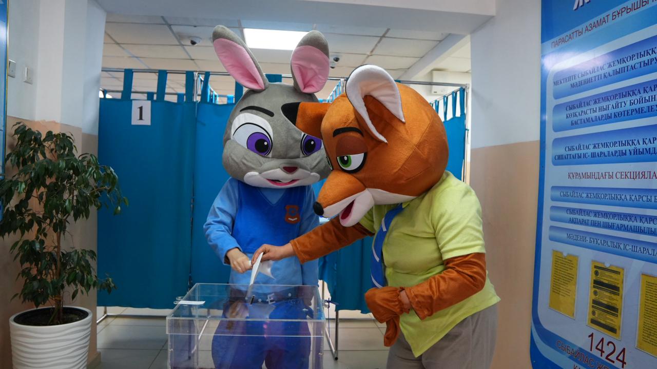 В день референдума на избирательный участок Илийского района пришли герои популярного мультфильма "Зверополис", которые добавили праздничного настроения присутствовавшим на участке. Жители региона, переодетые в костюмы крольчихи-полицейской Джуди Хоппс и лиса Ника Уайлда, решили не только развлечь односельчан, но и воспользоваться своим гражданским правом – проголосовать по поводу проекта новой Конституции Казахстана.